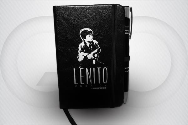 Caderneta de Anotações c/ porta-caneta (CANETA OPCIONAL), capa dura revestida em percalux, gravação em baixo-relevo ou silk, miolo com 80 folhas sem impressão. Medidas: 9x14cm.