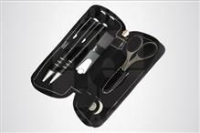 Kit executivo com 5 peças, em estojo sintético. Contém: 1 CANETA - 1 LAPISEIRA - 1 GRAMPEADOR - 1 TESOURA - 1 BORRACHA, EM UM ESTOJO DE COURO SINTÉTICO, NA COR PRETO E PRATA. Uma gravação já inclusa