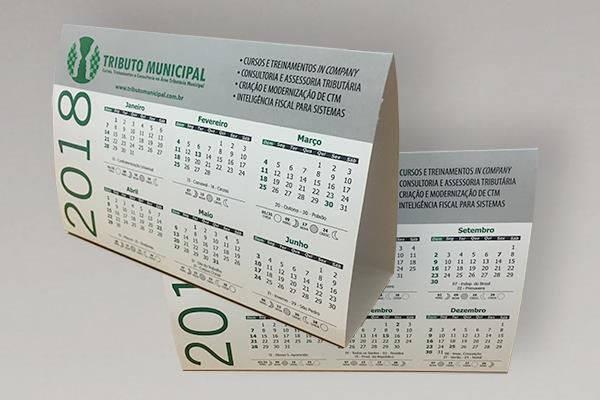 Calendários de mesa tipo triangulo, produzido em papel triplex 300gr, impressão 2 cores, medidas: 21x14cm (montado).